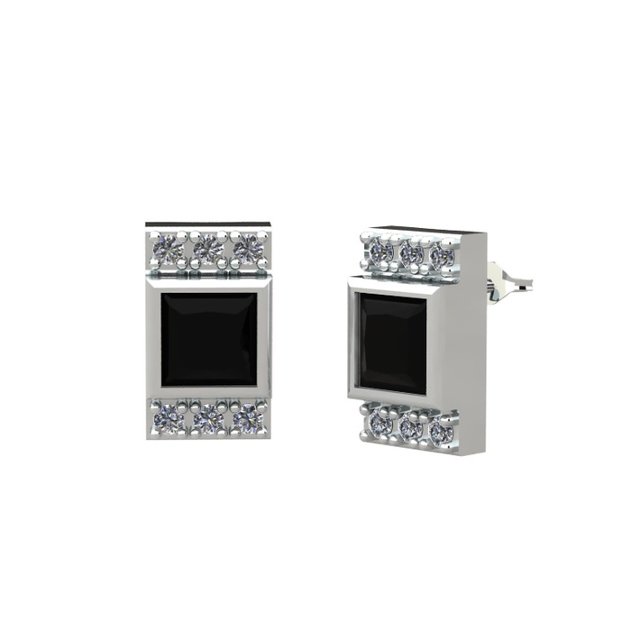 Siyah zirkon ve pırlanta 14 ayar beyaz altın küpe (0.132 karat)