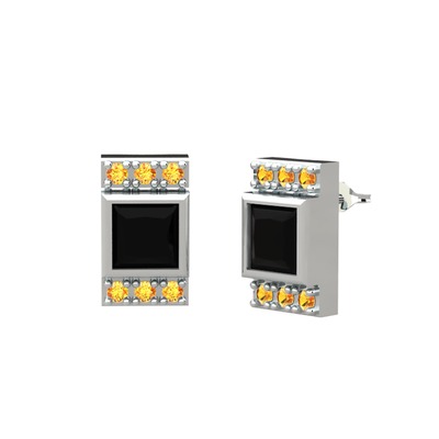 Siyah zirkon ve sitrin 925 ayar gümüş küpe