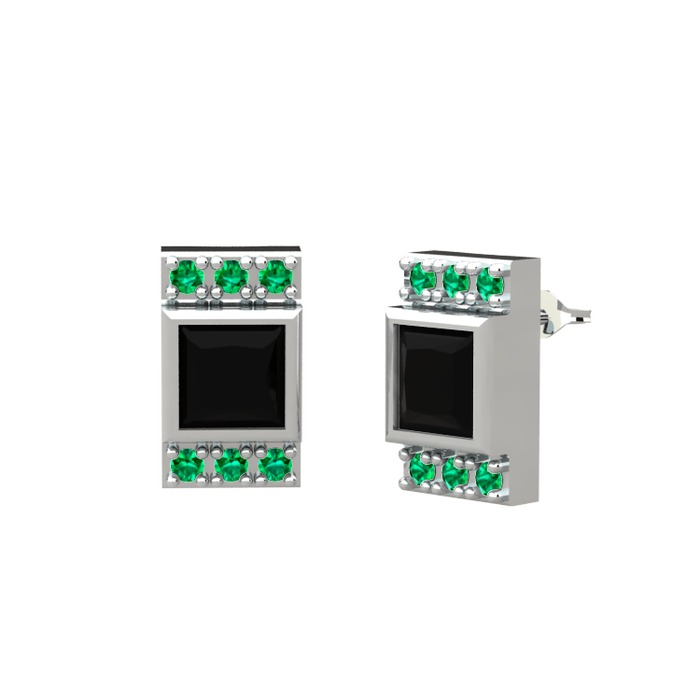 Siyah zirkon ve yeşil kuvars 8 ayar beyaz altın küpe