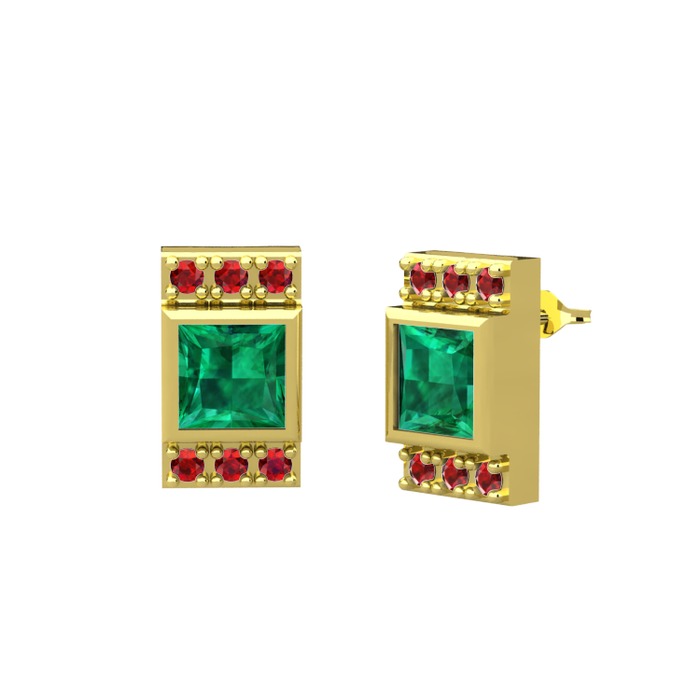 Yeşil kuvars ve garnet 14 ayar altın küpe