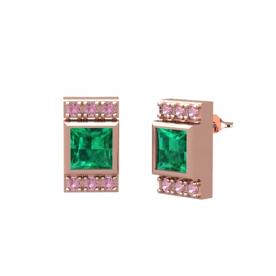 Yeşil kuvars ve pembe kuvars 8 ayar rose altın küpe
