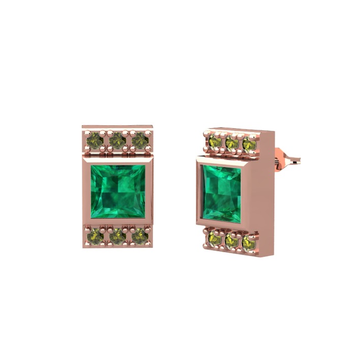 Yeşil kuvars ve peridot 14 ayar rose altın küpe
