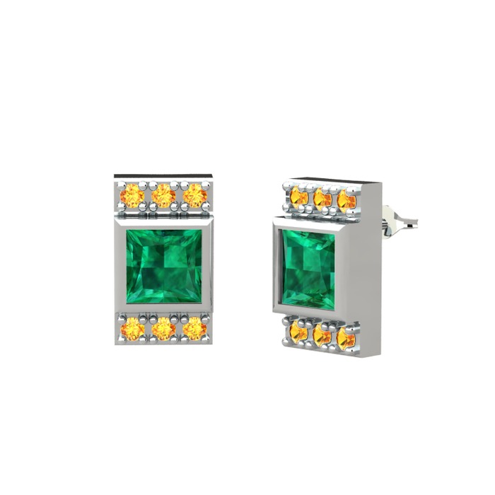 Yeşil kuvars ve sitrin 925 ayar gümüş küpe