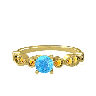 Akuamarin ve sitrin 14 ayar altın yüzük