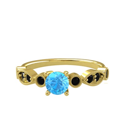 Akuamarin ve siyah zirkon 8 ayar altın yüzük