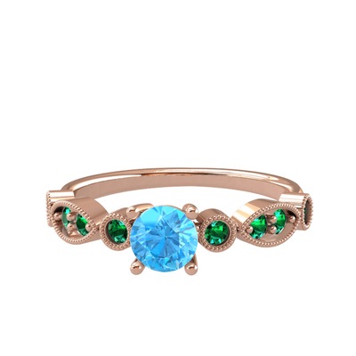 Akuamarin ve yeşil kuvars 14 ayar rose altın yüzük