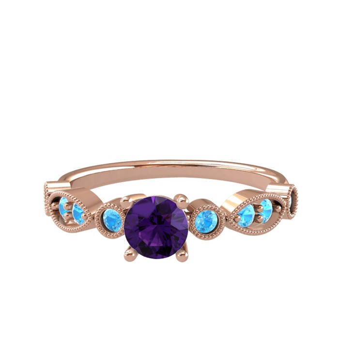 Ametist ve akuamarin 925 ayar rose altın kaplama gümüş yüzük