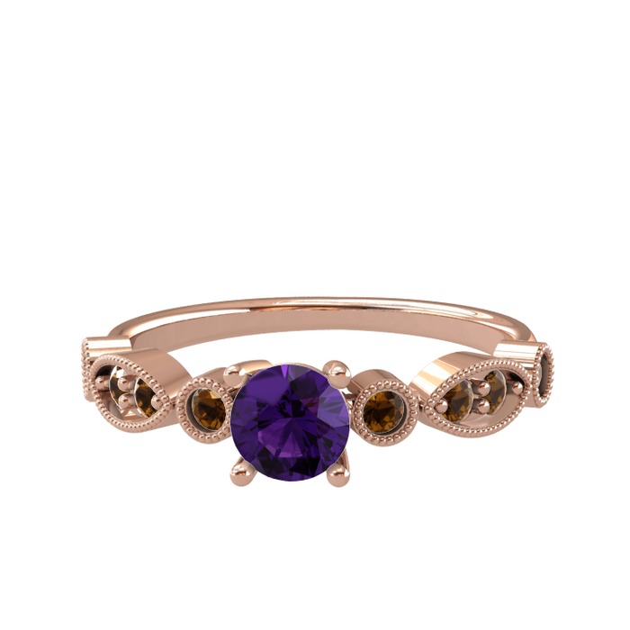Ametist ve dumanlı kuvars 18 ayar rose altın yüzük