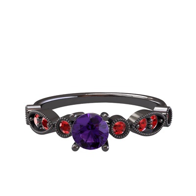 Ametist ve garnet 925 ayar siyah rodyum kaplama gümüş yüzük