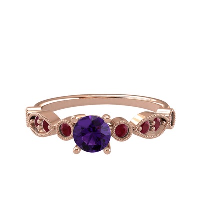 Ametist ve kök yakut 18 ayar rose altın yüzük