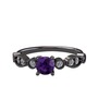 Ametist ve pırlanta 925 ayar siyah rodyum kaplama gümüş yüzük (0.288 karat)