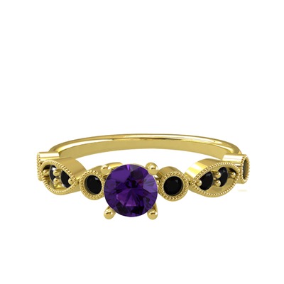 Ametist ve siyah zirkon 8 ayar altın yüzük
