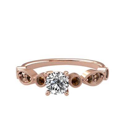Beyaz zirkon ve dumanlı kuvars 14 ayar rose altın yüzük
