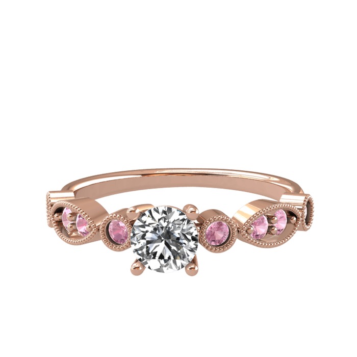 Beyaz zirkon ve pembe kuvars 925 ayar rose altın kaplama gümüş yüzük