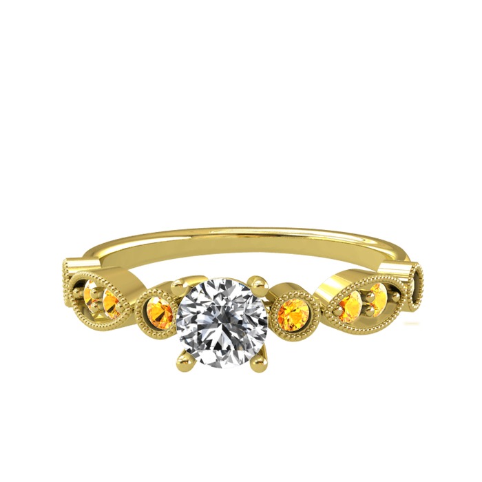 Beyaz zirkon ve sitrin 18 ayar altın yüzük