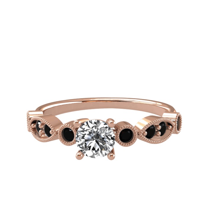 Beyaz zirkon ve siyah zirkon 925 ayar rose altın kaplama gümüş yüzük