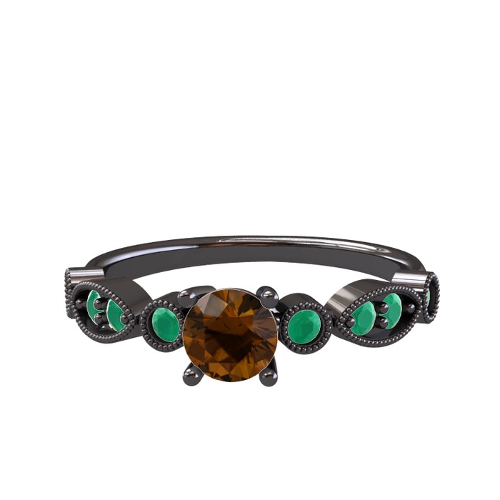 Dumanlı kuvars ve kök zümrüt 925 ayar siyah rodyum kaplama gümüş yüzük