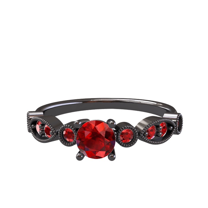 Garnet 925 ayar siyah rodyum kaplama gümüş yüzük