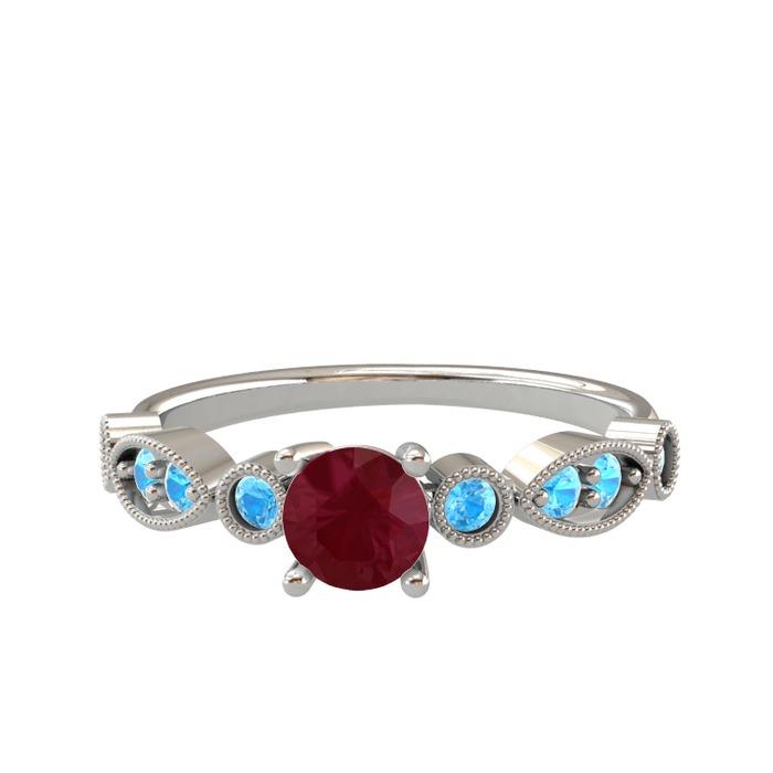 Kök yakut ve akuamarin 18 ayar beyaz altın yüzük