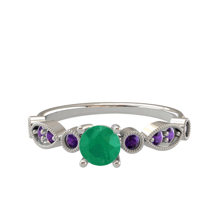 Kök zümrüt ve ametist 18 ayar beyaz altın yüzük