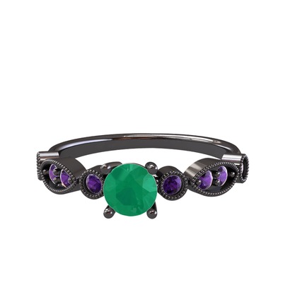 Kök zümrüt ve ametist 925 ayar siyah rodyum kaplama gümüş yüzük