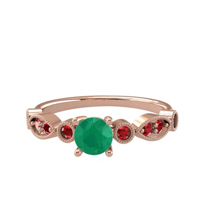 Kök zümrüt ve garnet 14 ayar rose altın yüzük
