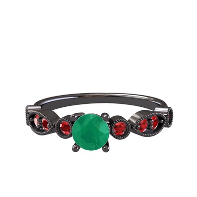 Kök zümrüt ve garnet 925 ayar siyah rodyum kaplama gümüş yüzük