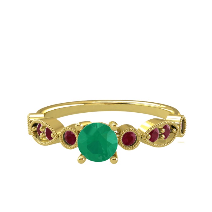 Kök zümrüt ve kök yakut 8 ayar altın yüzük