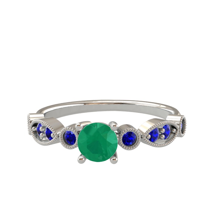 Kök zümrüt ve lab safir 8 ayar beyaz altın yüzük