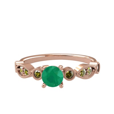 Kök zümrüt ve peridot 18 ayar rose altın yüzük