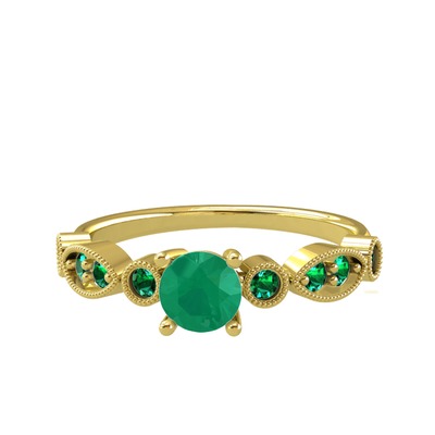 Kök zümrüt ve yeşil kuvars 14 ayar altın yüzük