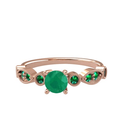 Kök zümrüt ve yeşil kuvars 8 ayar rose altın yüzük