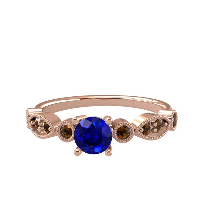 Lab safir ve dumanlı kuvars 925 ayar rose altın kaplama gümüş yüzük
