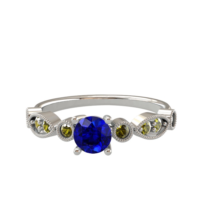 Lab safir ve peridot 8 ayar beyaz altın yüzük
