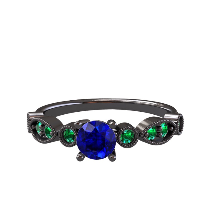 Lab safir ve yeşil kuvars 925 ayar siyah rodyum kaplama gümüş yüzük