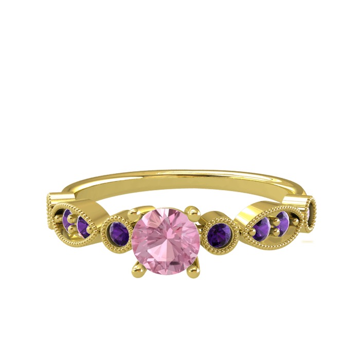 Pembe kuvars ve ametist 925 ayar altın kaplama gümüş yüzük