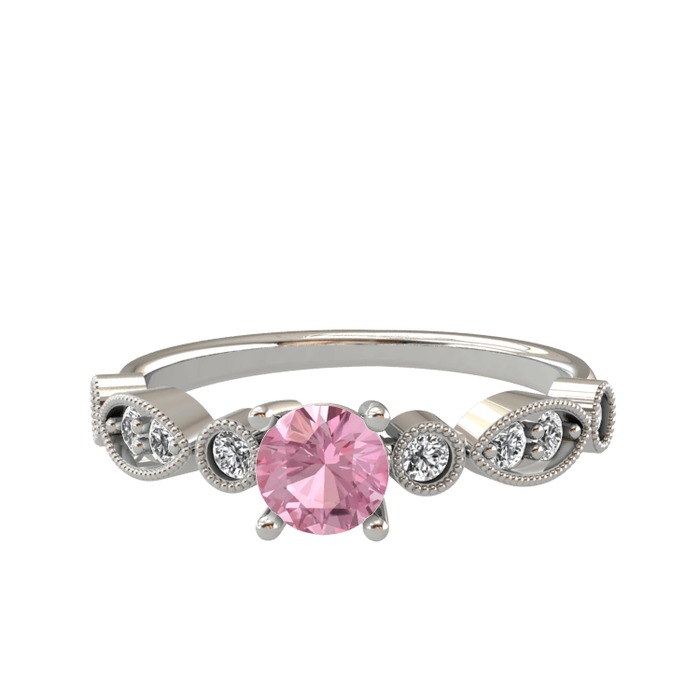 Pembe kuvars ve beyaz zirkon 925 ayar gümüş yüzük
