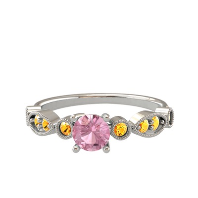 Pembe kuvars ve sitrin 8 ayar beyaz altın yüzük