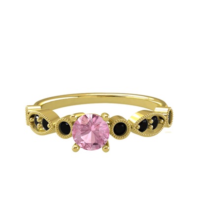 Pembe kuvars ve siyah zirkon 8 ayar altın yüzük
