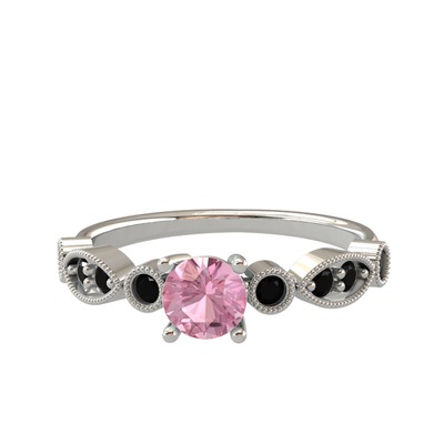 Pembe kuvars ve siyah zirkon 8 ayar beyaz altın yüzük