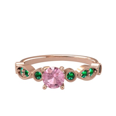 Pembe kuvars ve yeşil kuvars 18 ayar rose altın yüzük