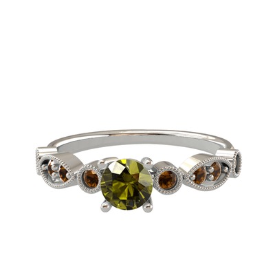 Peridot ve dumanlı kuvars 925 ayar gümüş yüzük