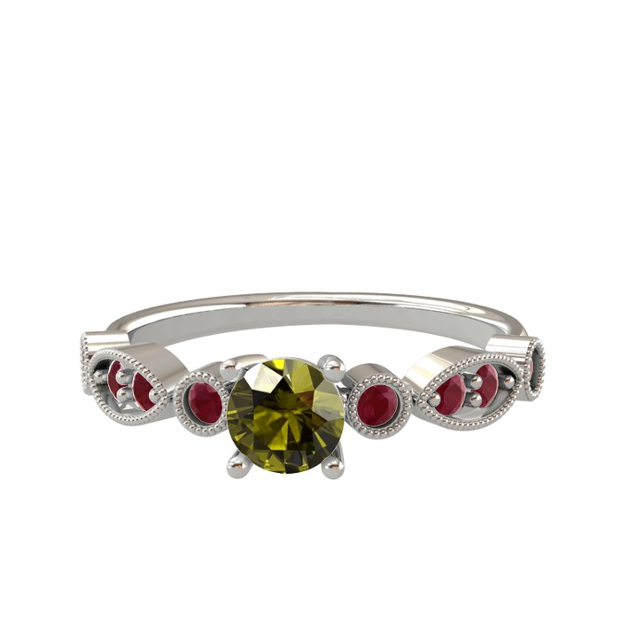 Peridot ve kök yakut 14 ayar beyaz altın yüzük