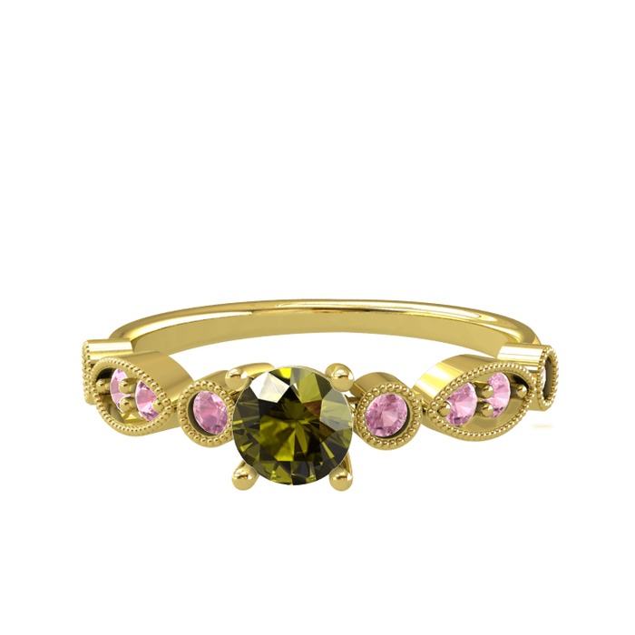 Peridot ve pembe kuvars 18 ayar altın yüzük