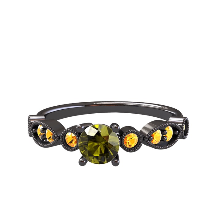 Peridot ve sitrin 925 ayar siyah rodyum kaplama gümüş yüzük