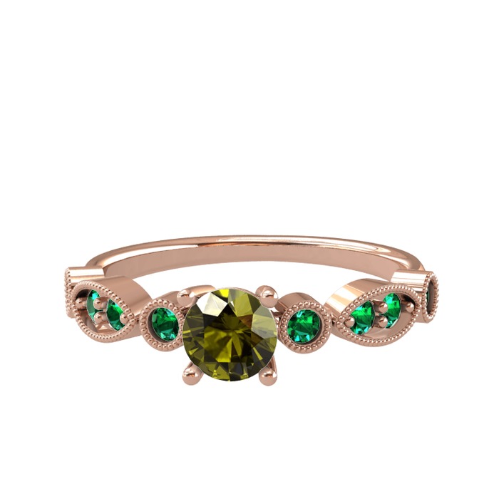 Peridot ve yeşil kuvars 8 ayar rose altın yüzük
