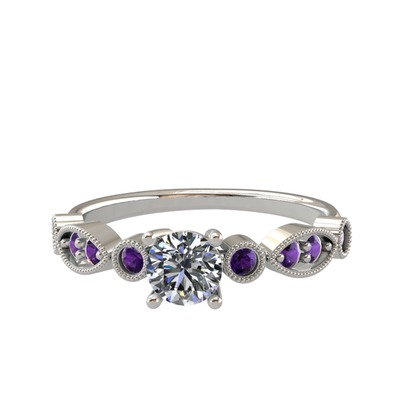 Pırlanta ve ametist 18 ayar beyaz altın yüzük (0.5 karat)