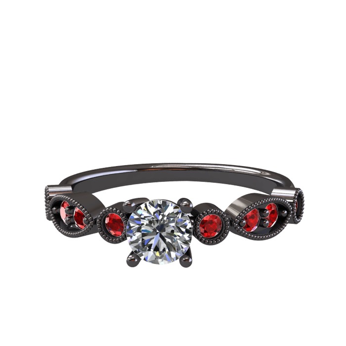 Pırlanta ve garnet 925 ayar siyah rodyum kaplama gümüş yüzük (0.5 karat)