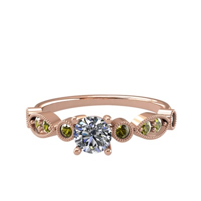 Pırlanta ve peridot 18 ayar rose altın yüzük (0.5 karat)