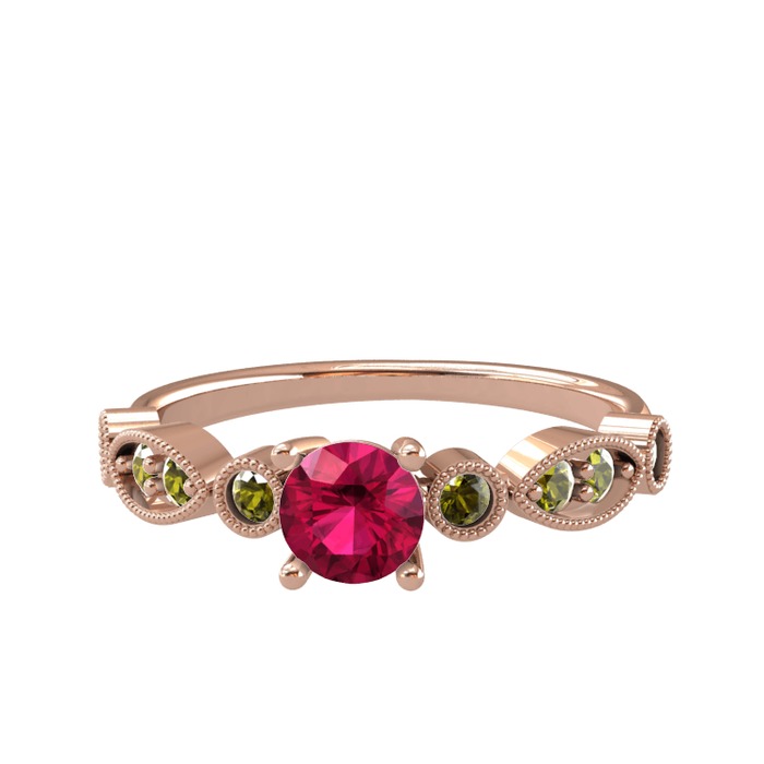 Rodolit garnet ve peridot 8 ayar rose altın yüzük